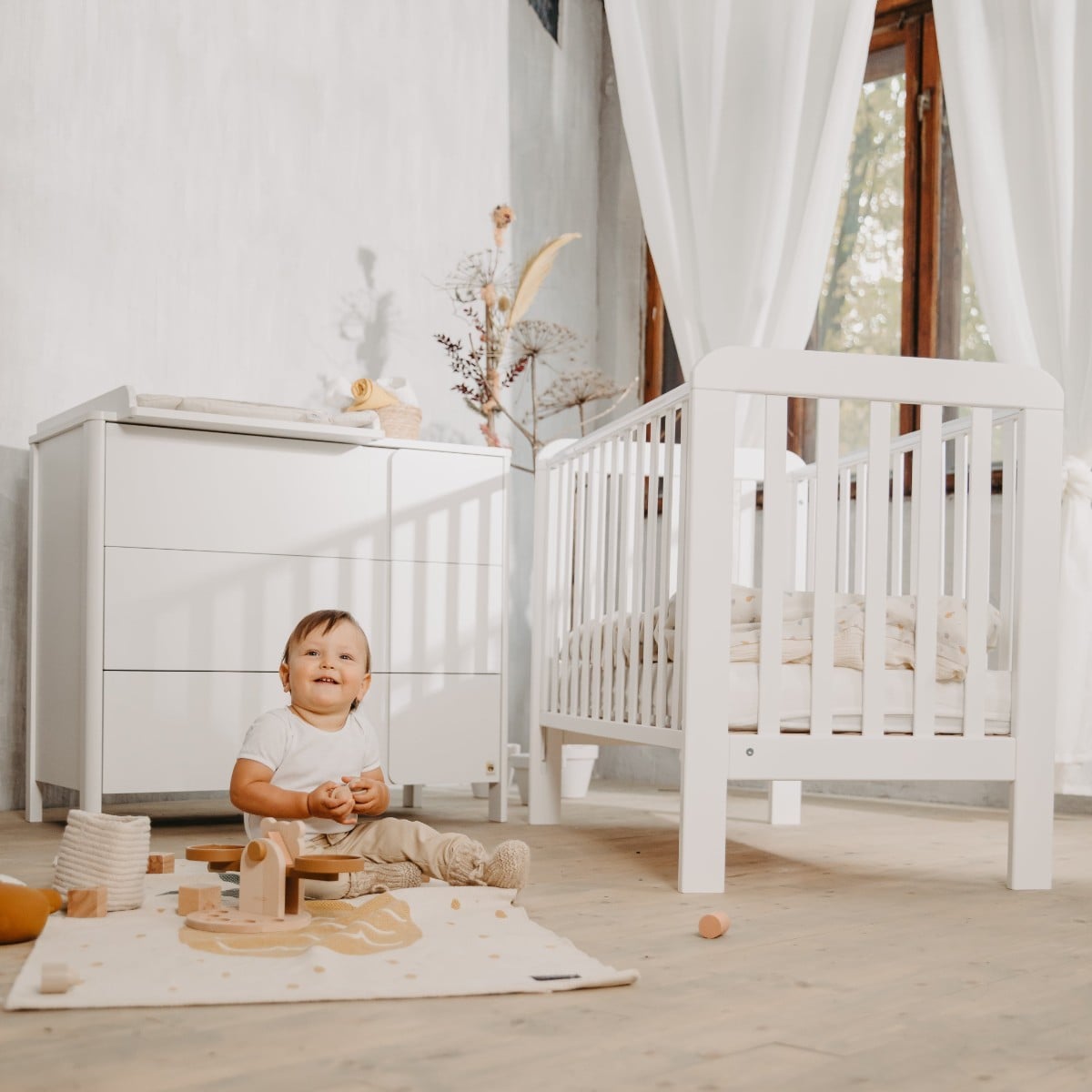 (Google review translated) Wir sind sehr zufrieden mit unserem Kauf von Yappy.lv Baby ist bereits 6 Monate alt und schläft vom ersten Tag an in seinem YappyÉtude-Bettchen. Ich empfehle auf jeden Fall den Kauf des Wiegenmechanismus, der der Schlüssel zum Erfolg ist, wenn Sie Ihr Kleines nachts in den Schlaf bringen. Das Bett ist in der Höhe verstellbar, so dass es lange Zeit nützlich sein wird. Wir haben auch eine passende Kommode mit Wickelfläche gekauft - eine große Hilfe sowohl beim Windelwechseln als auch bei den Übungen in den ersten Monaten. Jetzt, wo der Kleine groß ist, planen wir, die Wickelfläche zu entfernen und die Kommode als hübsche Kommode für Babykleidung zu verwenden.