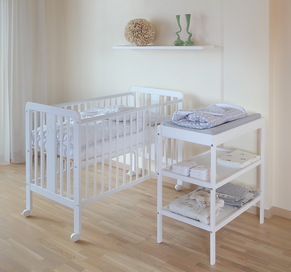 Minimālais mēbeļu komplekts jaundzimušajam – gultiņa, kumode vai pārtinamais galdiņš. Kas ir jāzina un kas jāņem vērā, izvēloties mēbeles mazulim vecāku guļamistabā? Svarīgi iepriekš izdomāt vietu, kur atradīsies mēbeles, lai tās nebūtu pārāk tuvu viena otrai. Mēbelēm ir jābūt maksimāli komfortablām mazulim, kā arī funkcionāli lietojamām vecākiem.