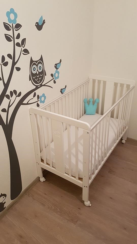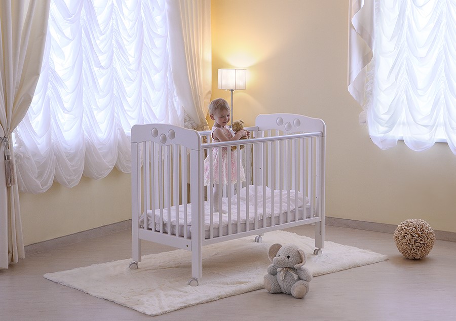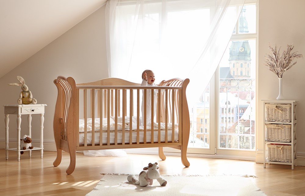Pirmos mēnešus būs ērtāk, ja novietosiet bērna guļamistabu līdzās vecāku gultai. Tad mamma jebkurā brīdī varēs piekārtot segu vai noglāstīt mazuli naktī, neceļoties no gultas. Tāpēc pirmā gultiņa ir jāizvēlas tāda, kurai viegli nolaižama viena no sienām un vidū izņemamas vairākas līstes.